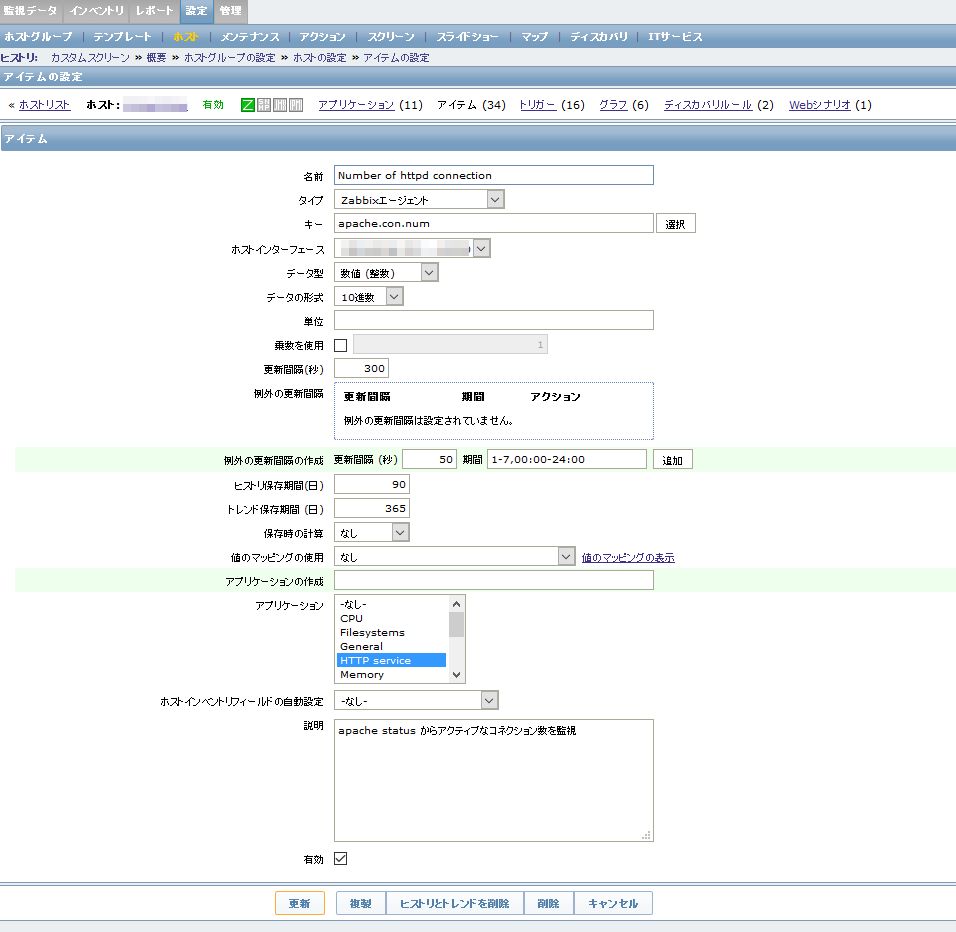 画面右上の「アイテムの作成」でapache.con.numをキーとして設定する。
